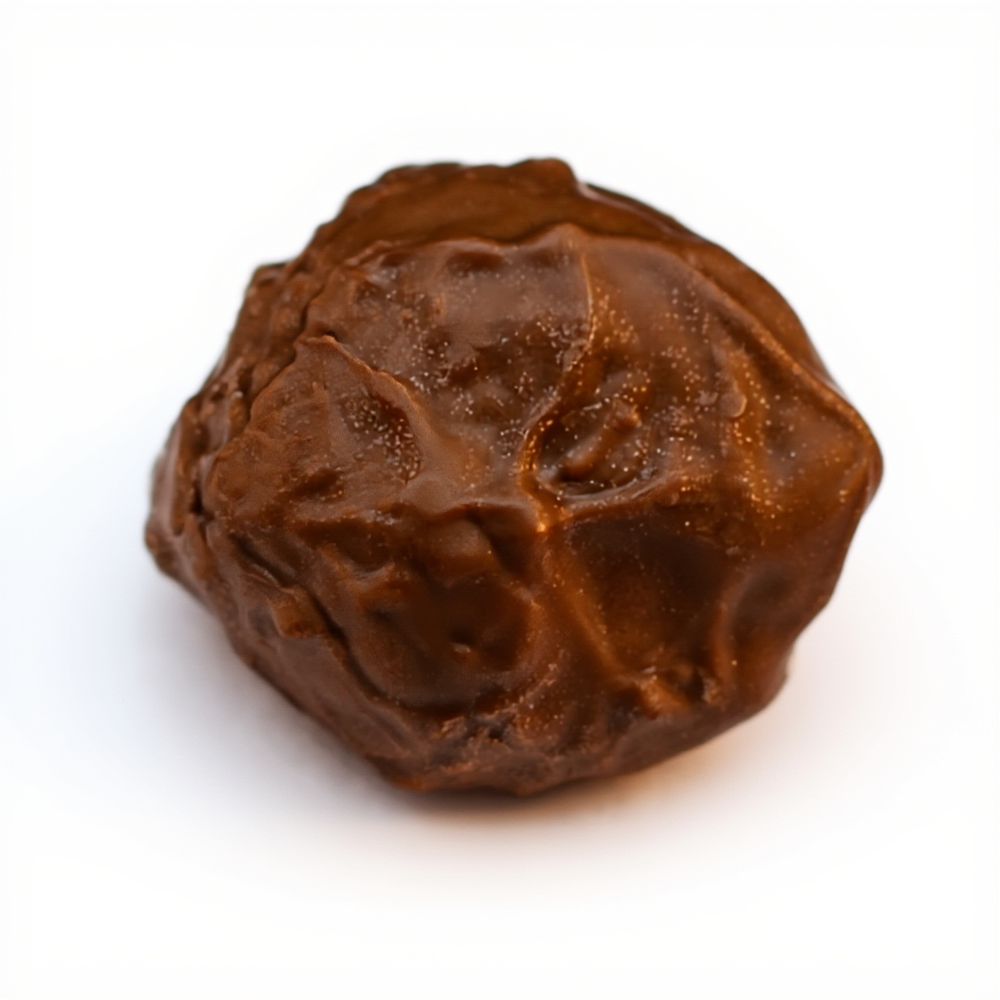 Grand Marnier Truffle combines dark chocolate with orange liqueur for a clear, focused balance of bitter and citrus notes. The dark ganache is smooth and dense, carrying the warmth of the liqueur and a clean orange edge. A thin dark chocolate shell, finished with fine sprinkles, adds a light crunch and a dry, lasting finish.