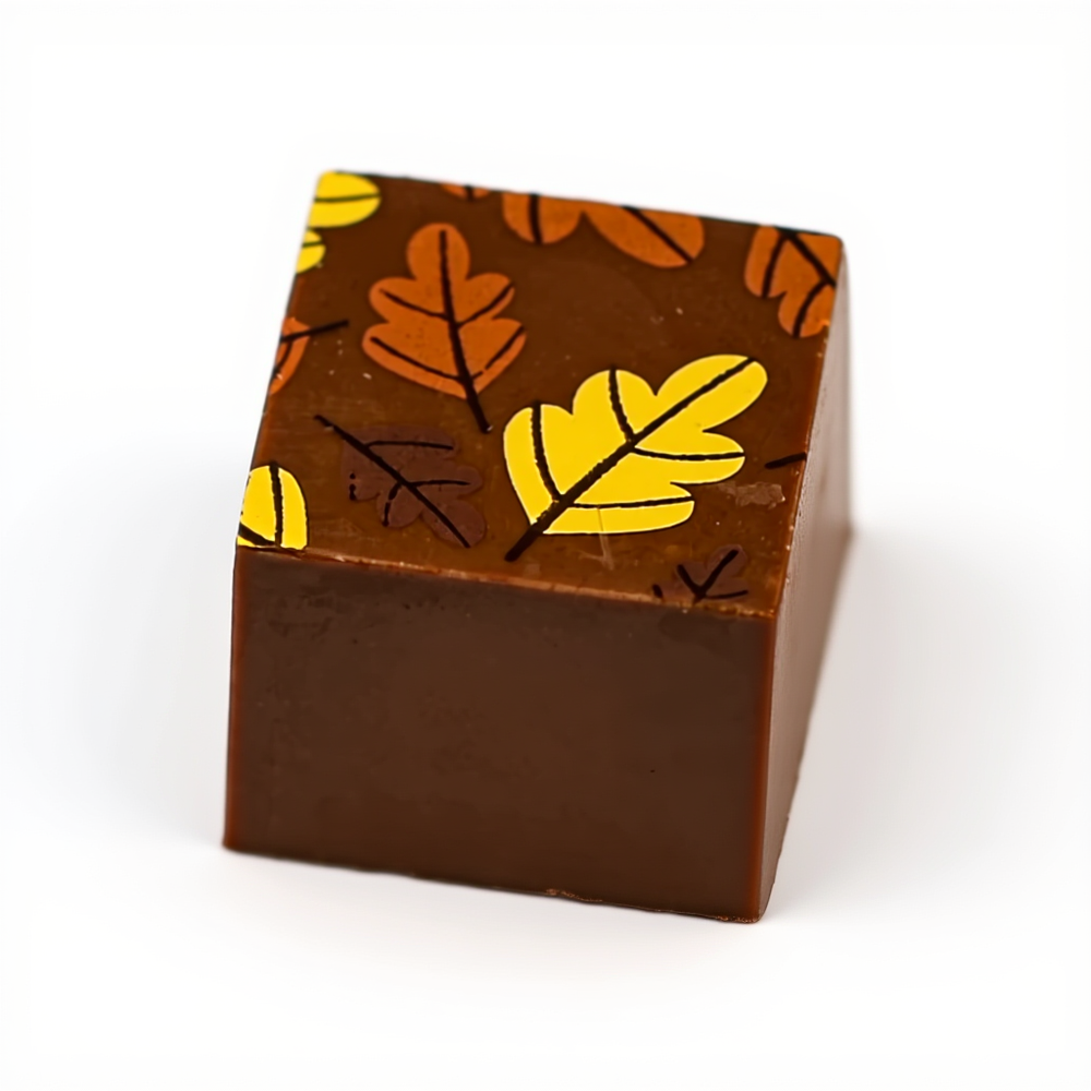 Hazelnut Praline pairs a milk chocolate shell with a smooth ganache made from Gianduja hazelnuts and milk chocolate. The filling is soft and silky, carrying a clear roasted nut flavour with gentle sweetness. The milk chocolate adds depth and roundness, creating a clean, balanced finish.