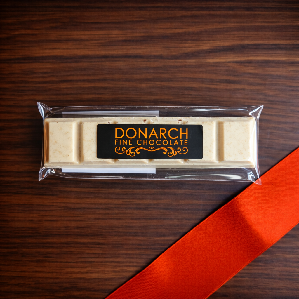 White Biscoff Chocolate is a solid white chocolate bar blended with pieces of Biscoff biscuit. The chocolate has a smooth, creamy texture, while the biscuit adds a light crunch and warm caramelized flavor. The combination gives a balanced sweetness with a gentle note from the Biscoff.